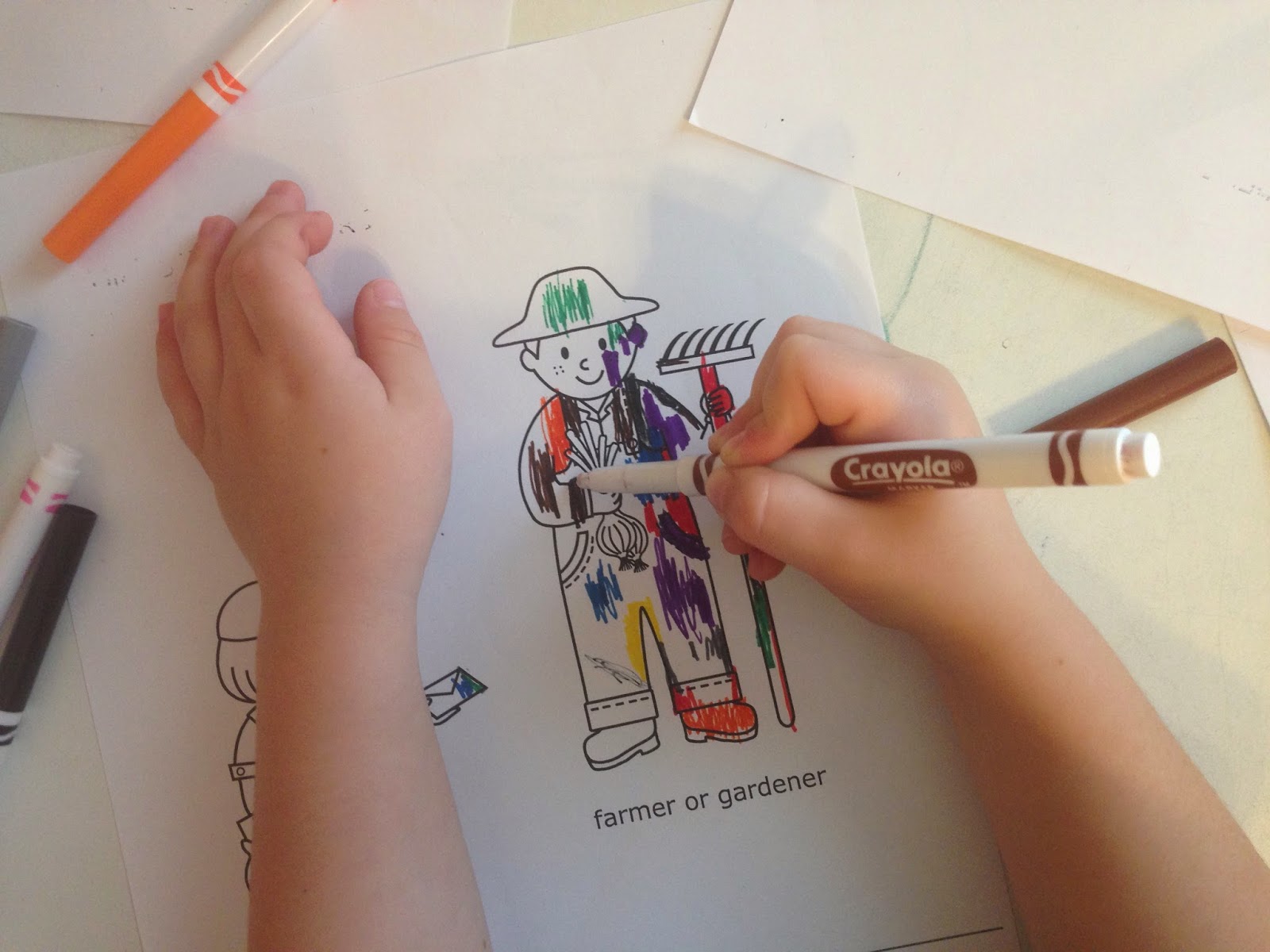 During table time, we talked about a few community helpers and other jobs that people have. We talked about what they want to be when they grow up, and a lot of the answers have changed from the beginning of the year. These will be puppets for an activity coming up next month.